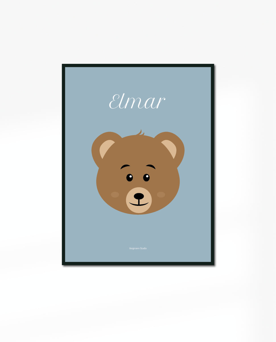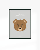 Adorable and modern baby poster with animal illustration of a bear. The design is available with name and birthday and in 4 different colors.