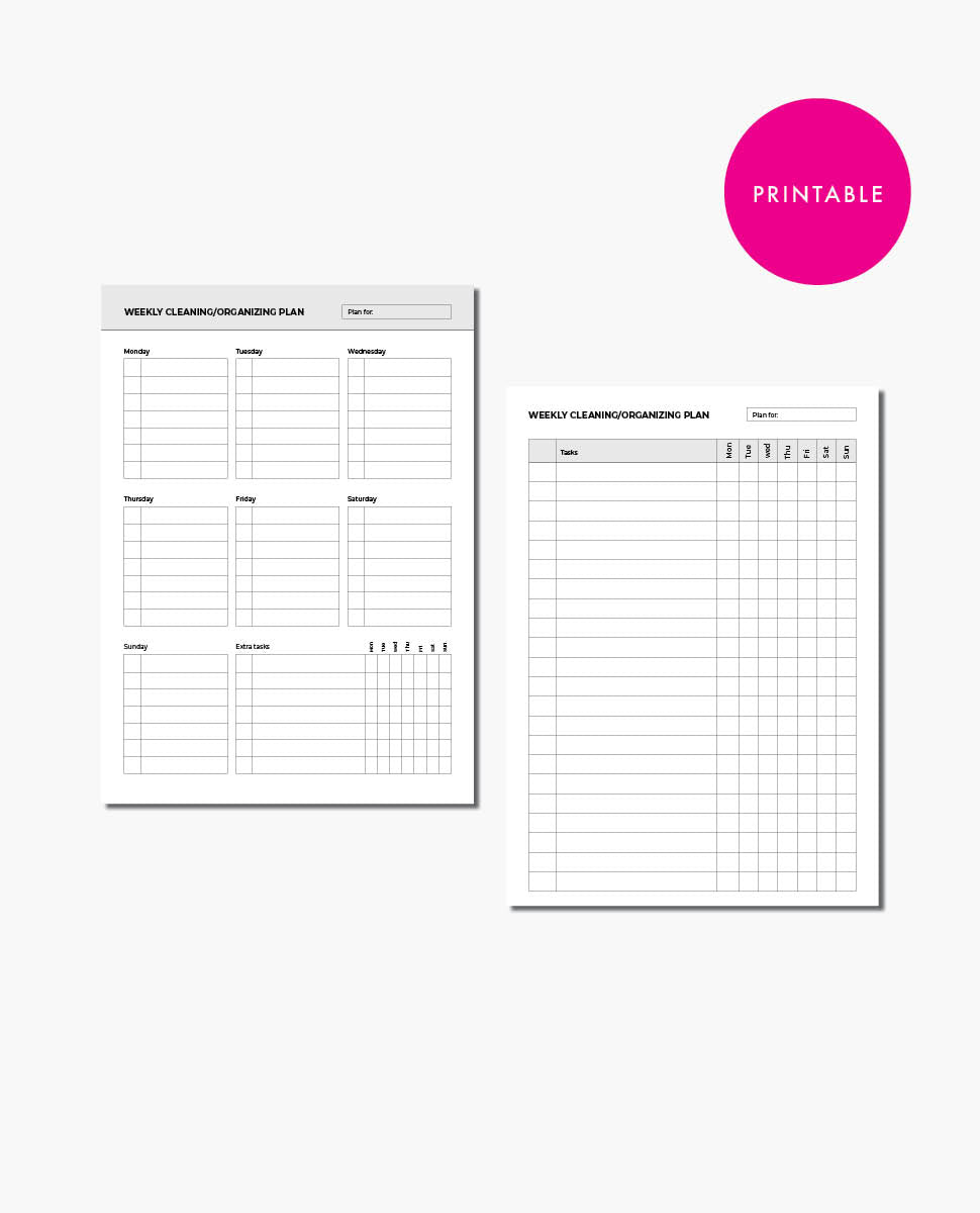 Make your cleaning and organising better with better plan. A4 Printable with structure for you to divide the tasks into each day or as a long list.