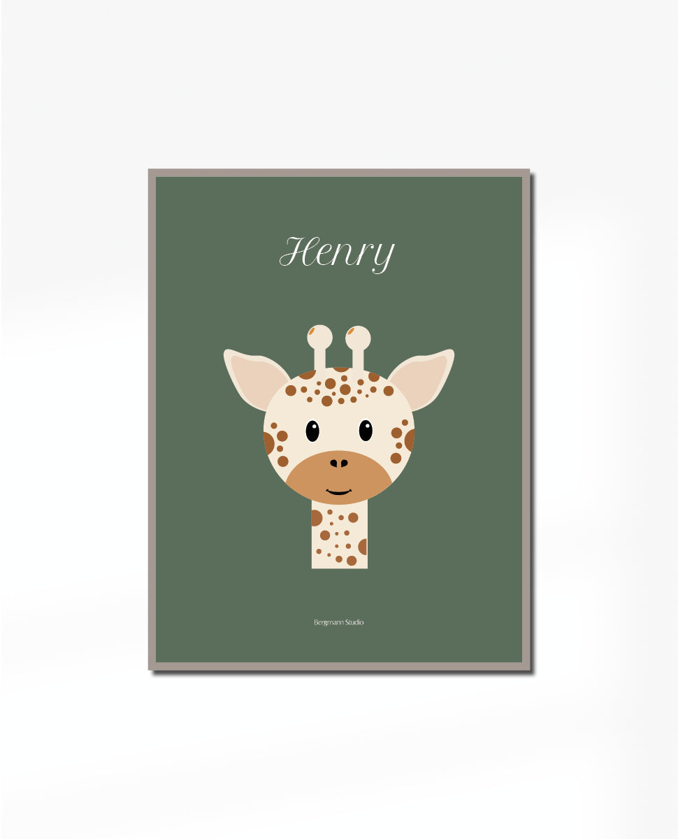 Cute baby poster with giraffe illustration on. Perfect decoration for the kids bedroom or nursery.