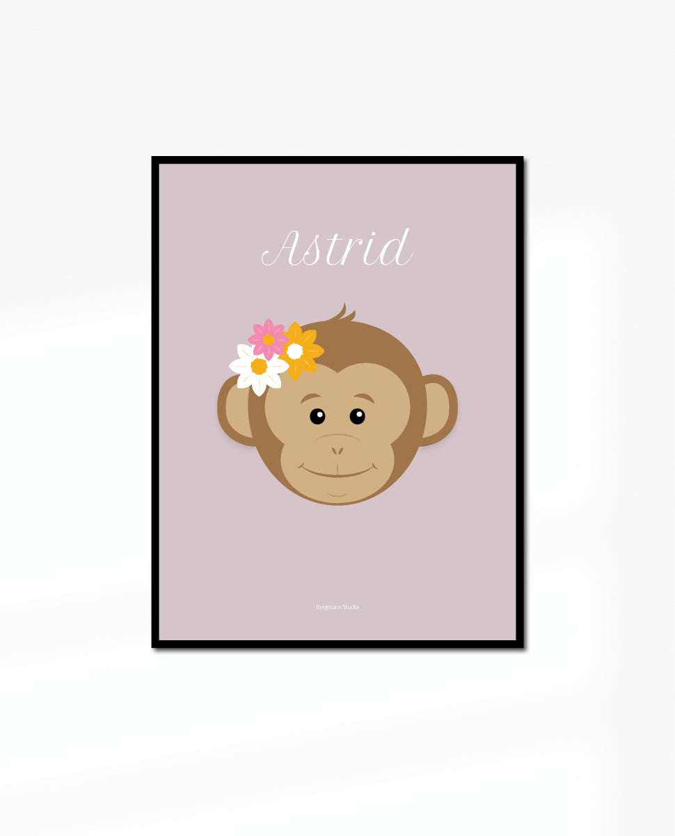 Monkey with flowers - Baby Poster - Personalised