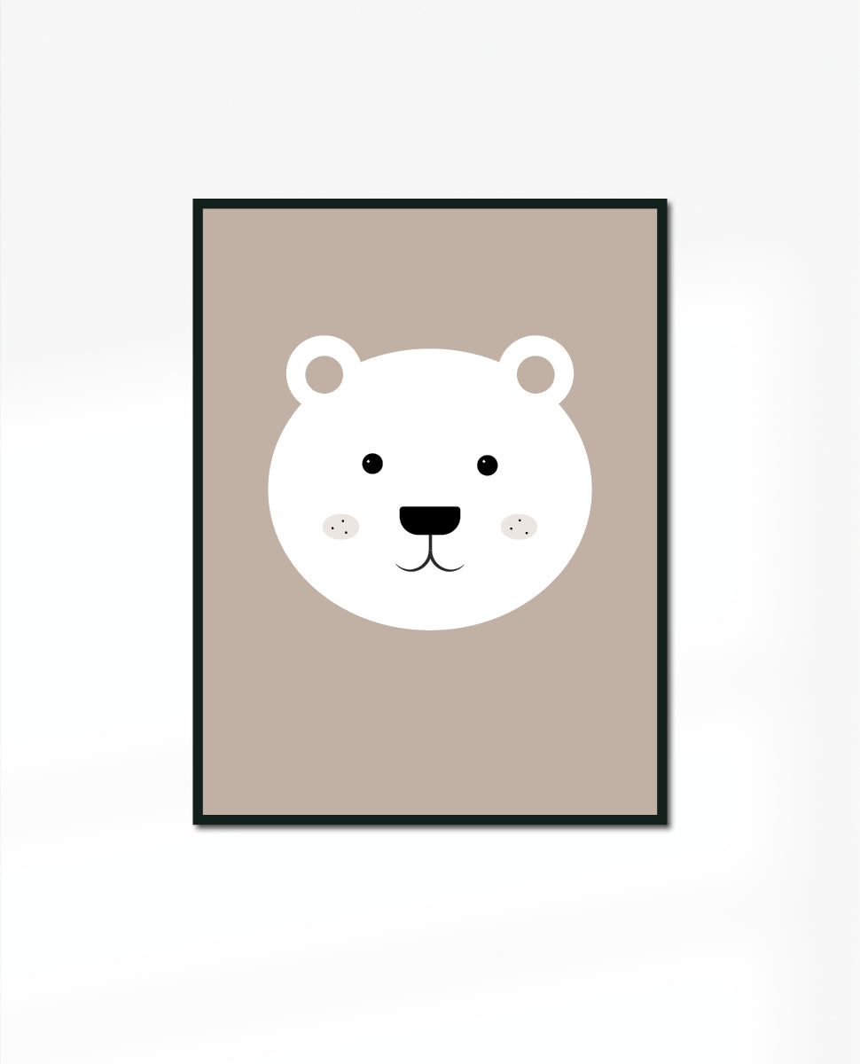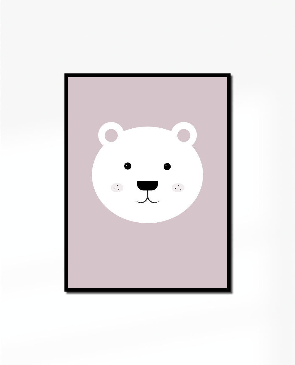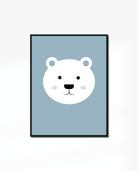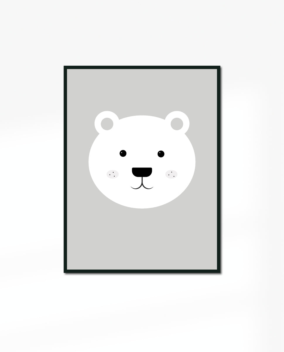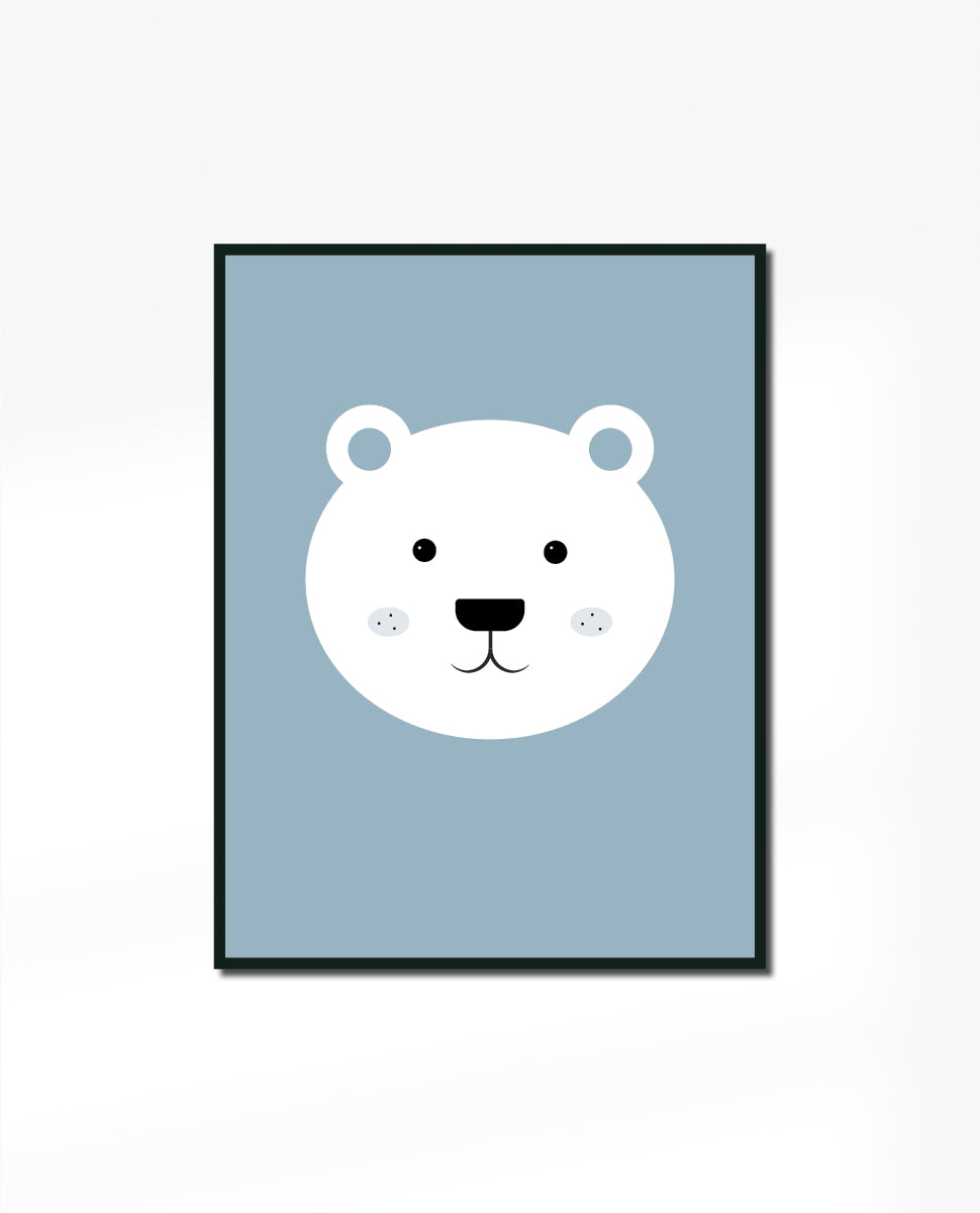 Adorable and modern baby poster with animal illustration of a polar bear. The design is available with name and birthday and in 4 different colors.