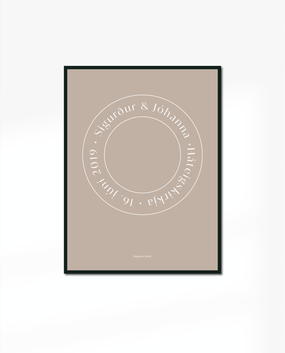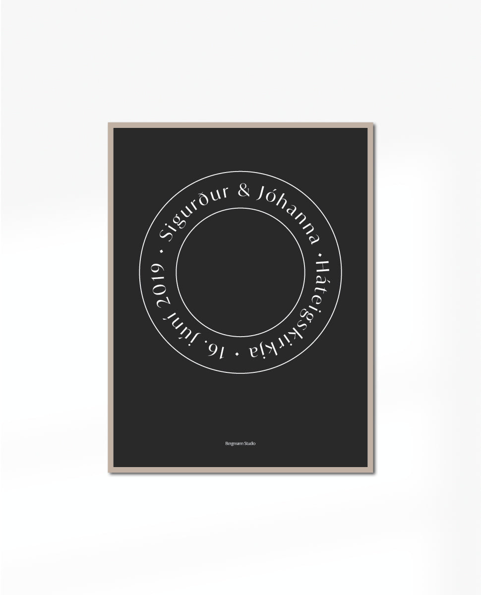 Custom wedding posters in modern style. The wedding day is a special day and having a poster that is personal and unique. Buy poster for yourself or give it as present. Simple poster with circle and text around. You can add the information you want to it. It can be names, wedding day or a location.