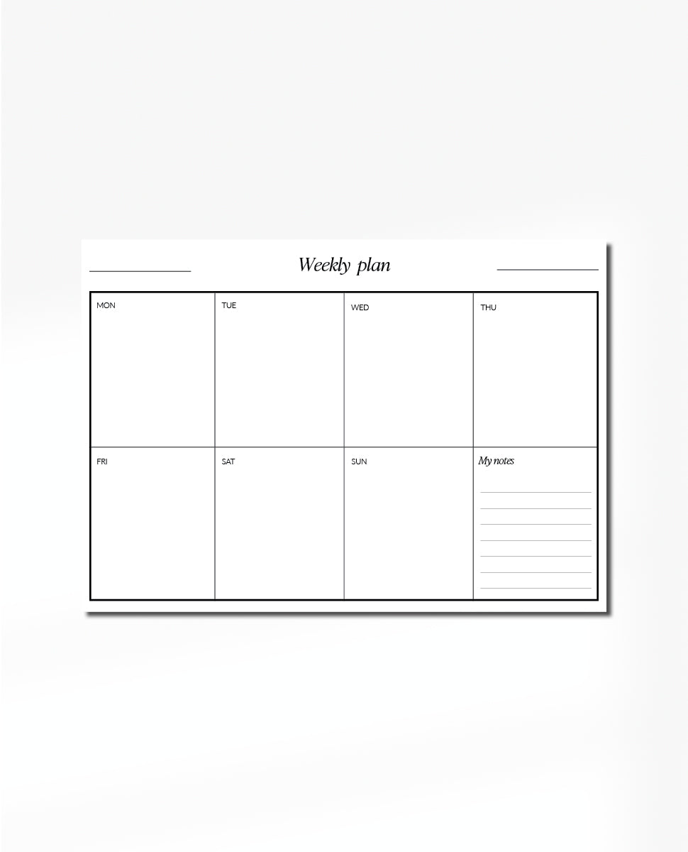 Let’s be organised together. We offer digital product of 7 day weekly plan that you can print from home. You can track how much you drink, make meal plan, write your to do list and other information to make your day more organised.