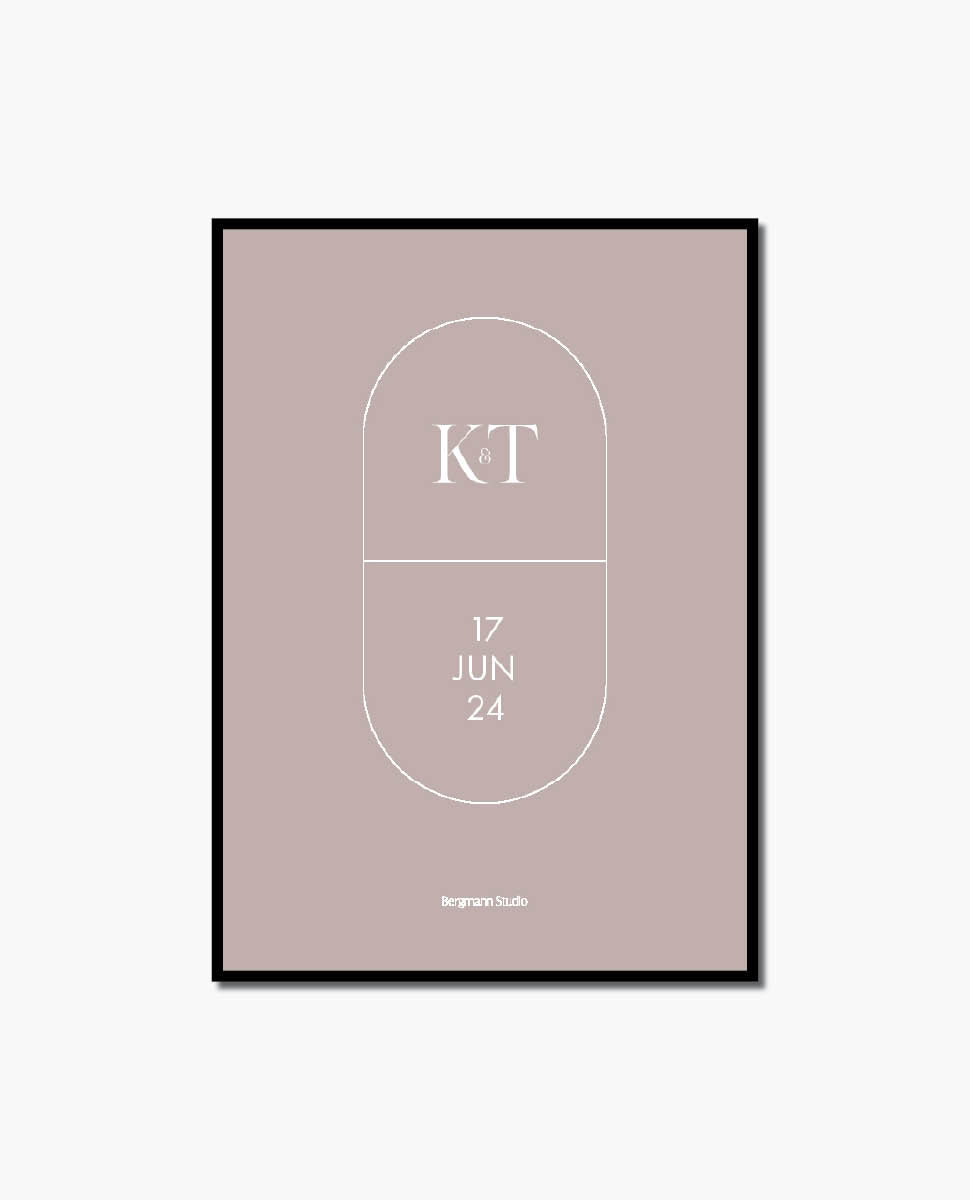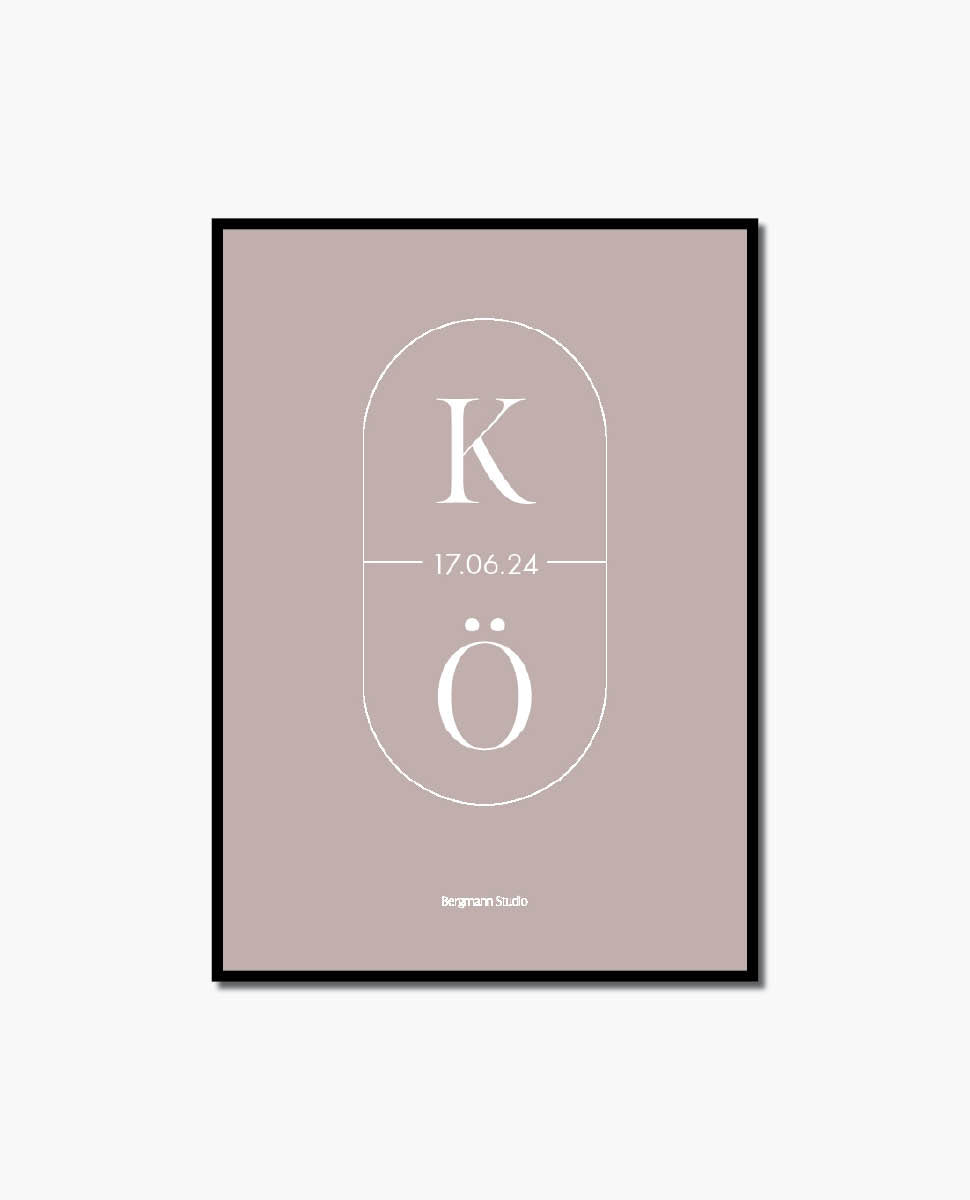 Brúðkaups plakat - Upphafsstafur og dagsetnign í sporöskjulaga hring