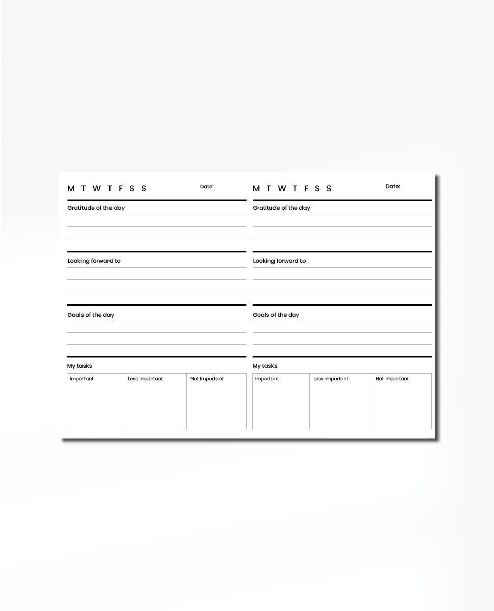 This plan will help you to get better understand and overview of your day. Write down your goals, what you're thankful for & what you are looking forward to. The plan also help you to prioritise your tasks, so you don't have to worry and have too many tasks on the same time. Box it down with important, less important and not so important.
