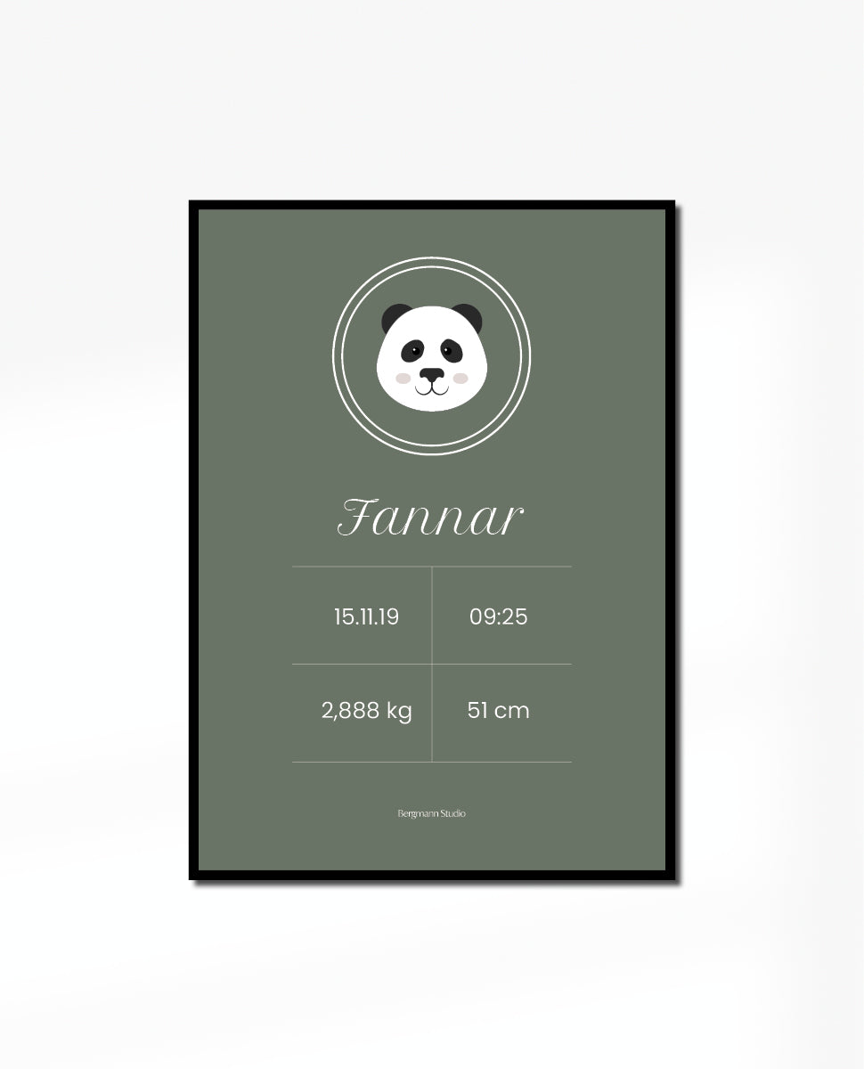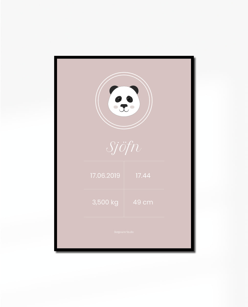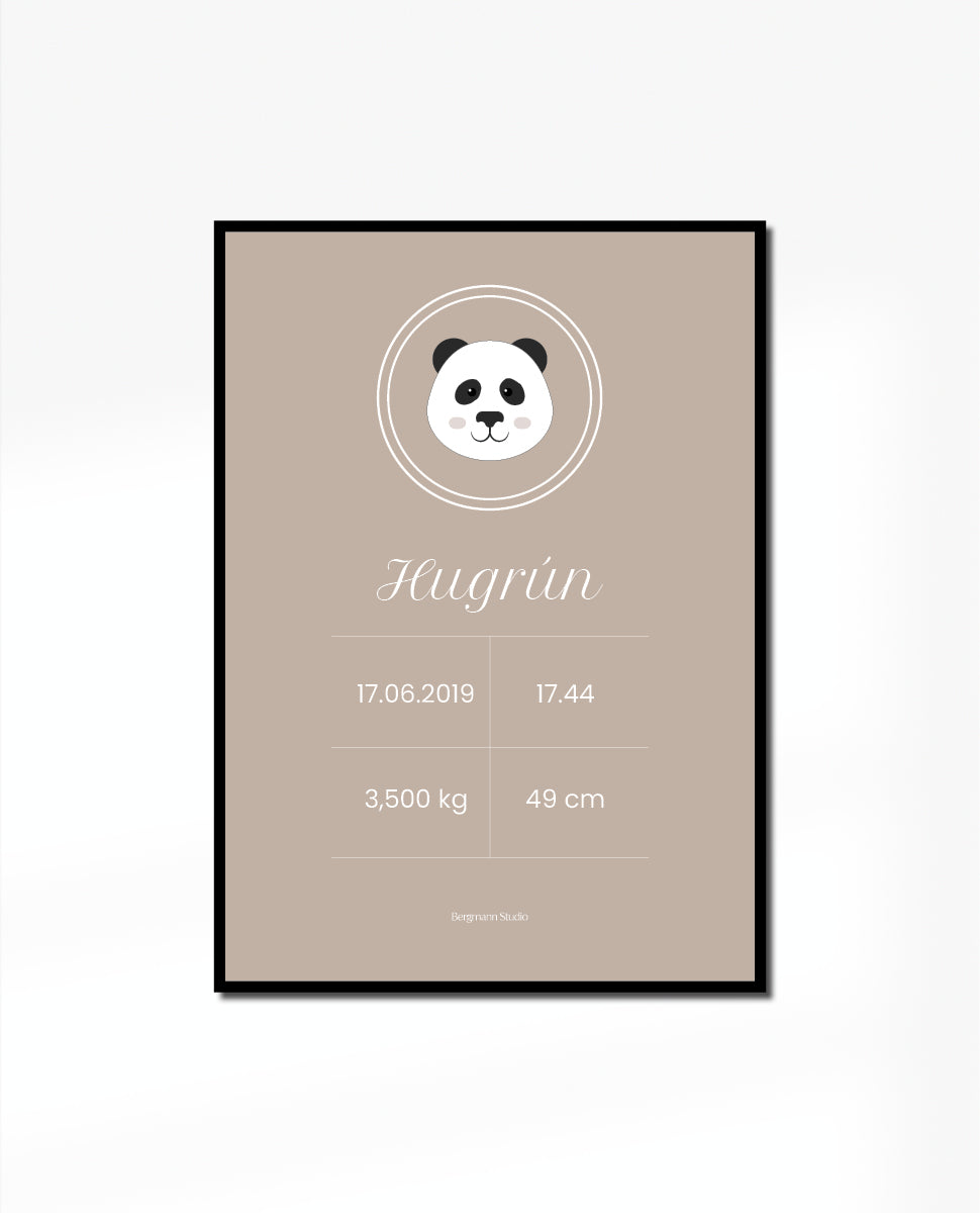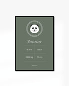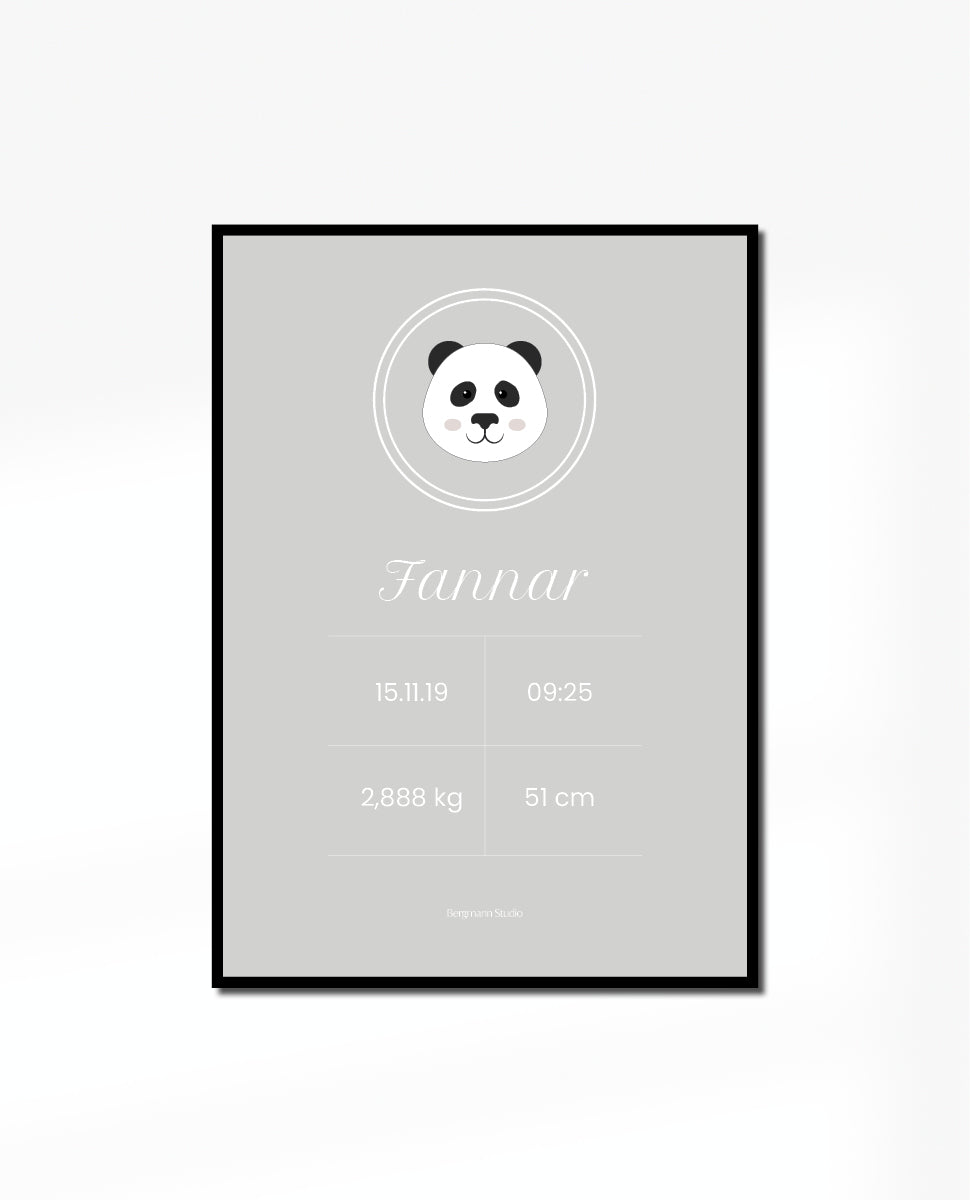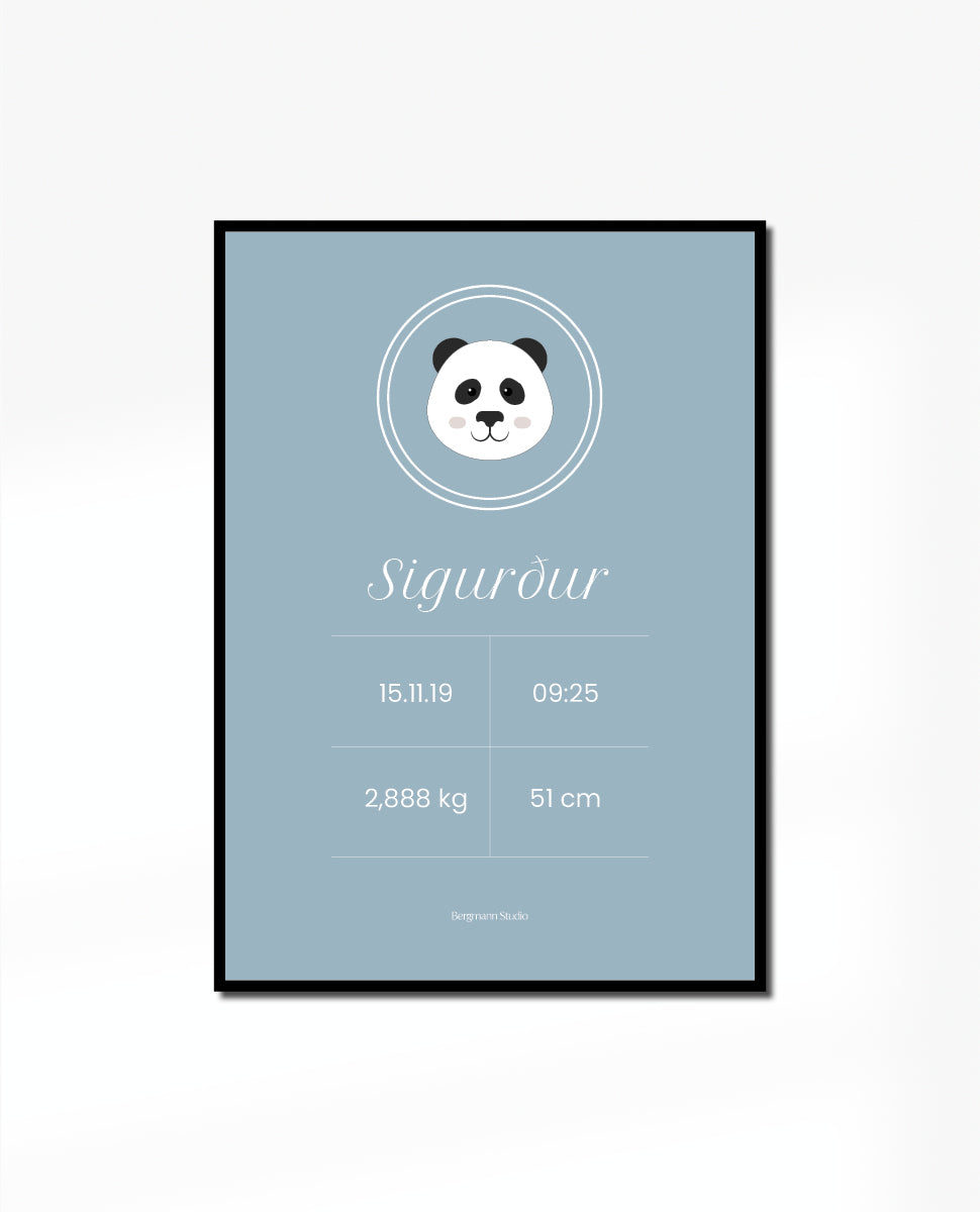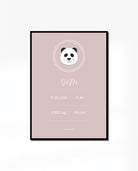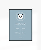Modern & simple birth poster design with panda bear illustration. This poster is ideal baptism present with the birth information that would be perfect to place it in the nursery or the baby's bedroom.