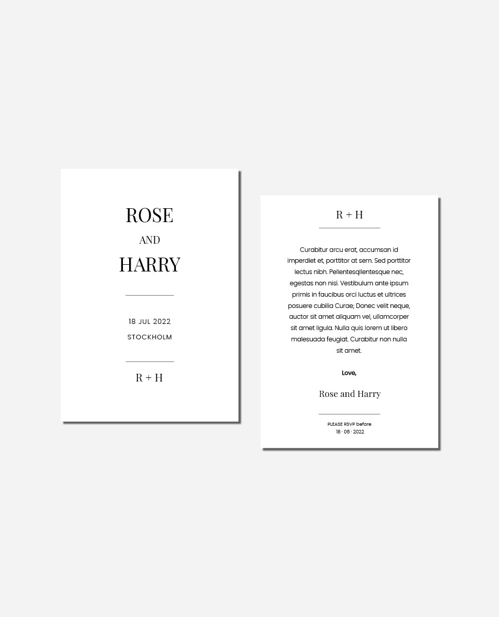 Introducing Blanc - the epitome of elegance and simplicity in our wedding invitations. Featuring a minimal, 2-sided design, these invitations embody the sophistication and exclusivity of your special day. Make a statement with Blanc.