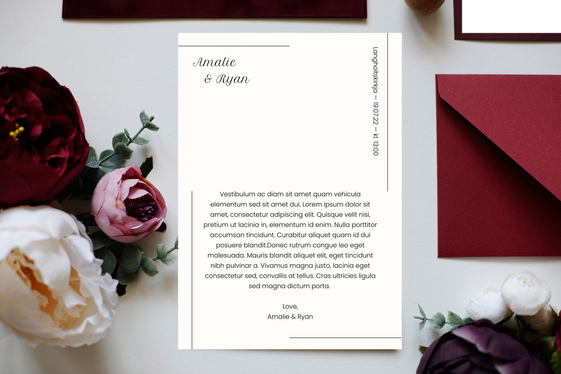 Elevate your wedding invitations with our luxurious linen design. Our minimalistic style conveys elegance and sophistication, setting the tone for your special day. The sleek design of our invitations will leave a lasting impression on your guests, making it the perfect choice for your wedding.