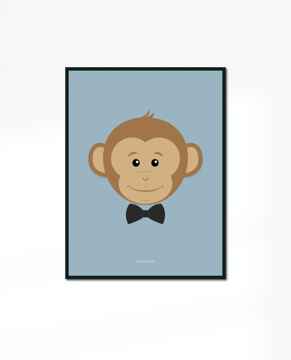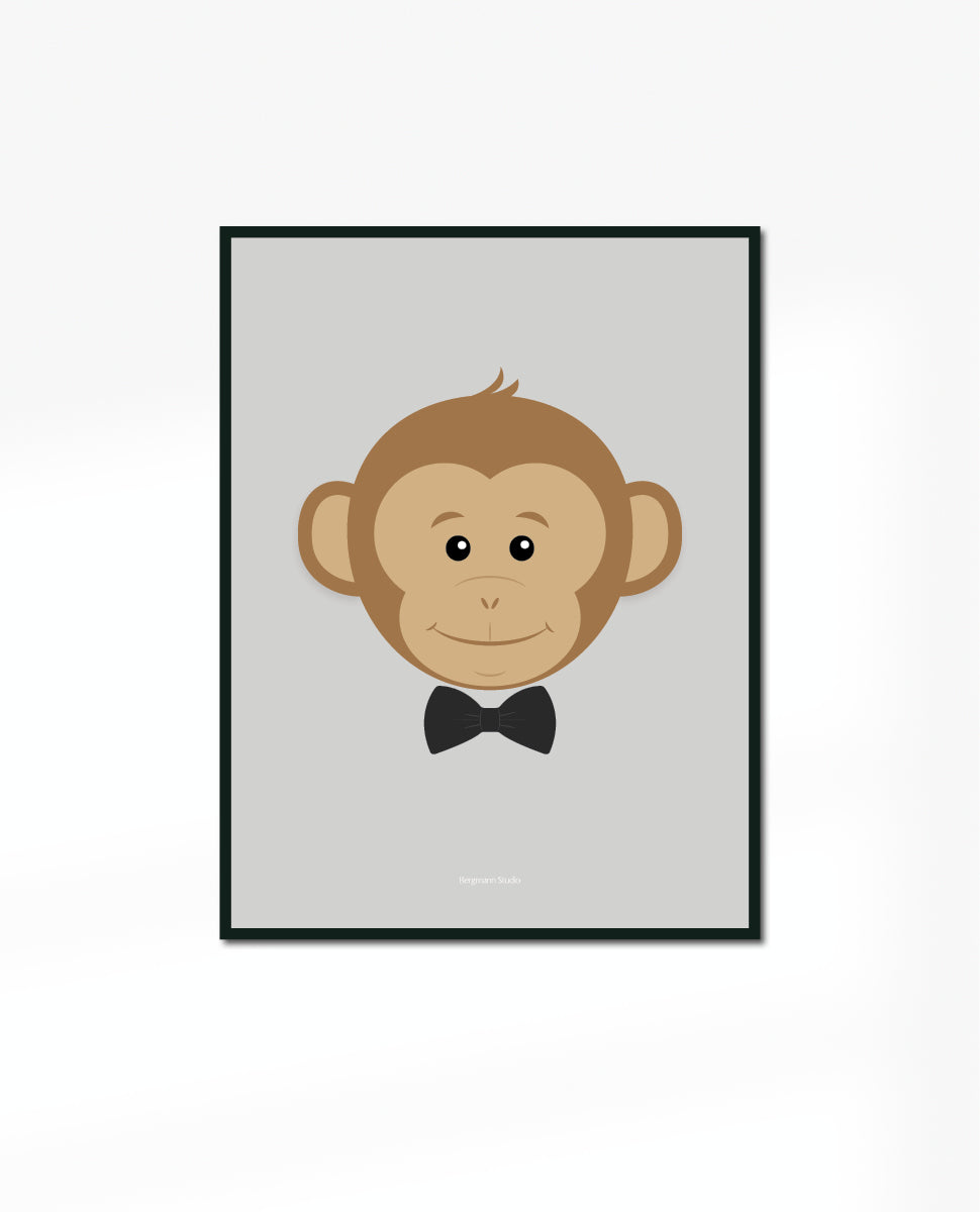 Adorable baby poster with monkey illustration on and it is available in two versions. One is with flower on left year and the other is with a bowtie. This illustration was designed for the Icelandic influencer Alesif and her Daughter.