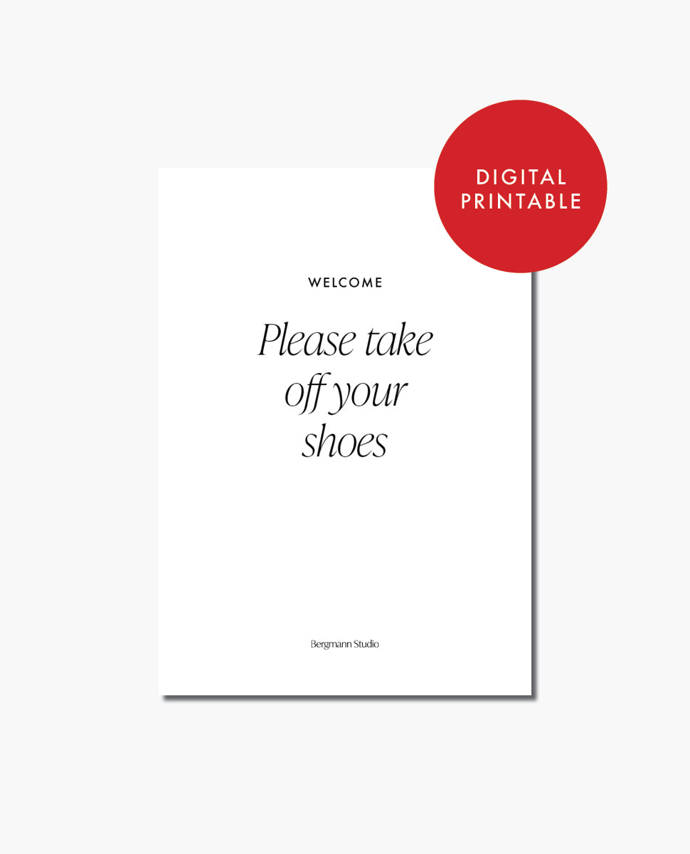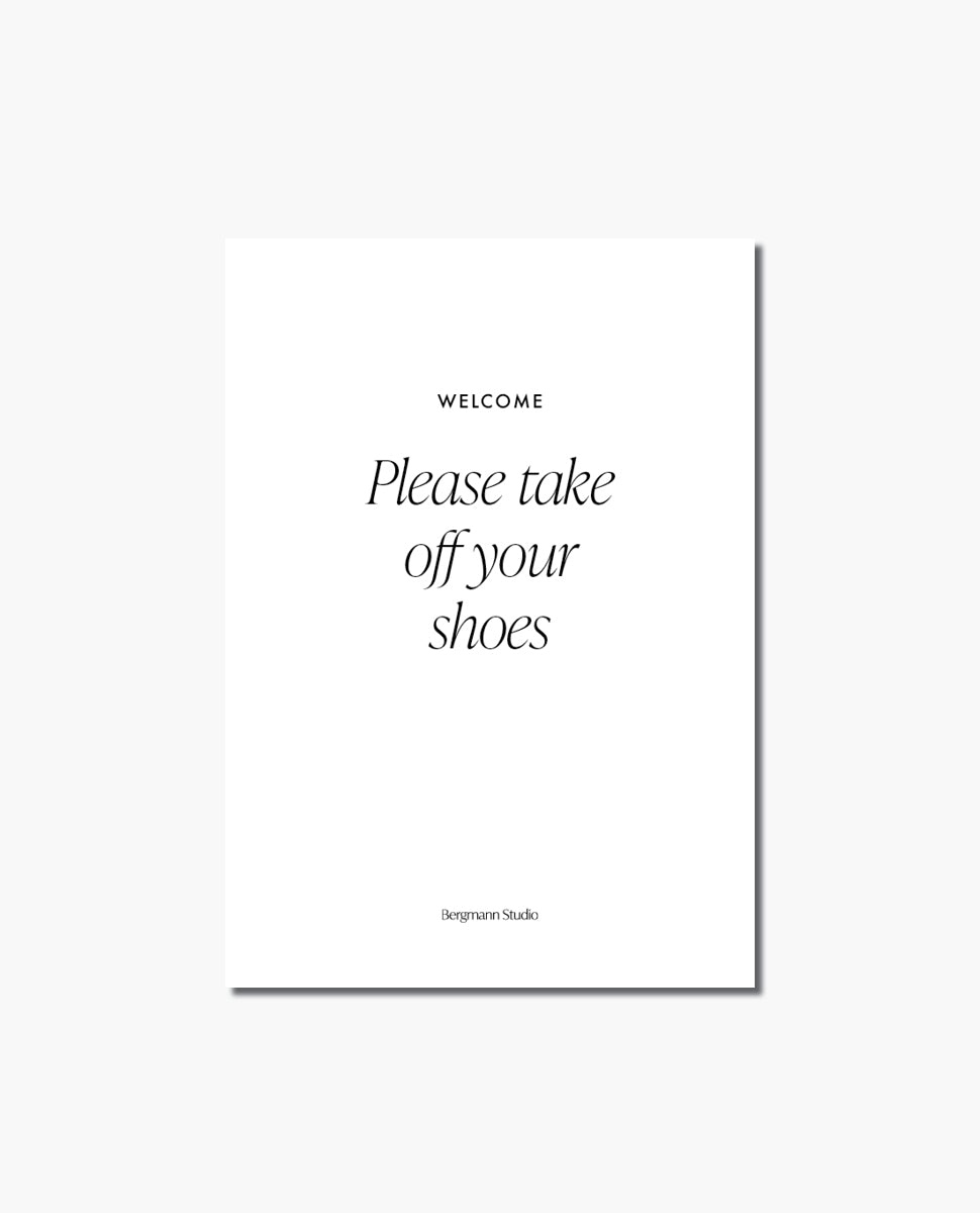 A friendly reminder to your guests to let them know that it's a rule to take off shoes. This product is home printed friendly.